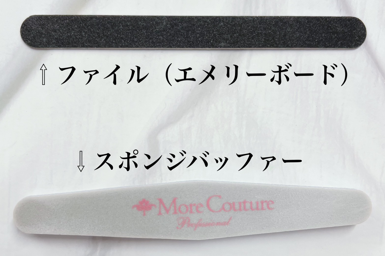 ・ネイルファイル(エメリーボード):爪の形を整えるヤスリになります。購入しようとするとヤスリの粗さがいくつかありますが150~220Gの間で選びましょう。迷った場合は180G(グリット)前後が削られすぎず、適度な粗さでおすすめです。